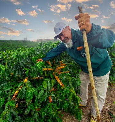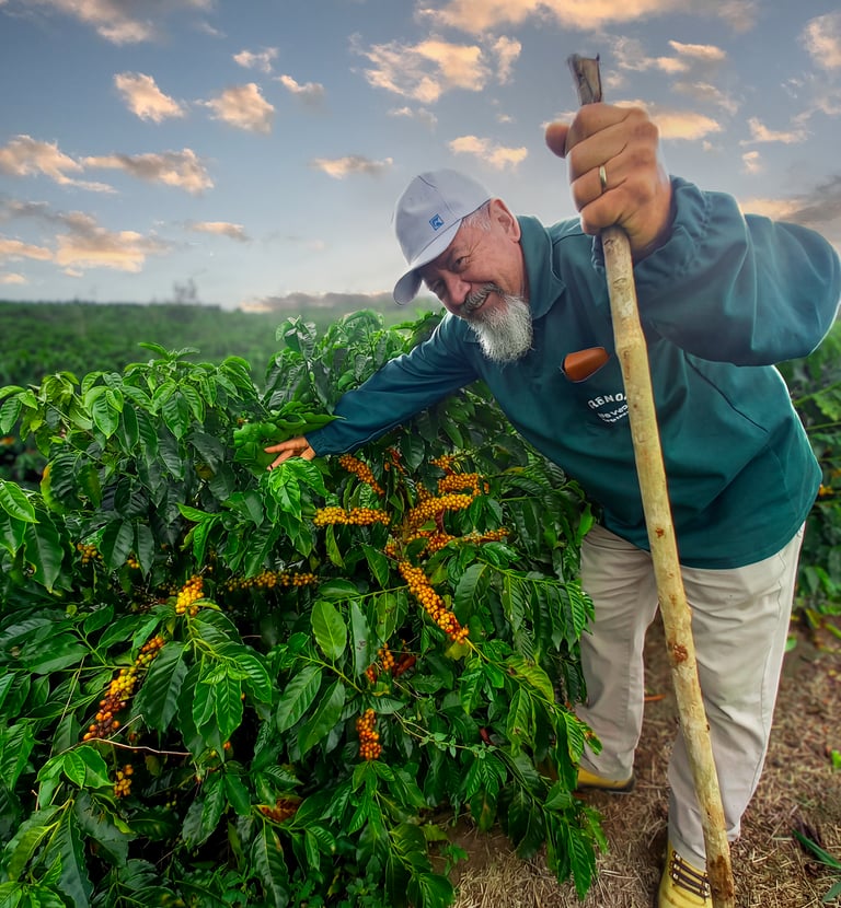 A Fazenda Ouro Verde é administrada por Ana Cristina e Idimar Paes, um casal que há três décadas vive a cafeicultura com amor, dedicação e propósito. Foram anos de aprendizado, superação e constante evolução, até se tornarem referência na produção de cafés especiais e em práticas agrícolas sustentáveis.