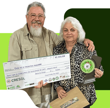 A Fazenda Ouro Verde é administrada por Ana Cristina e Idimar Paes, um casal que há três décadas vive a cafeicultura com amor, dedicação e propósito. Foram anos de aprendizado, superação e constante evolução, até se tornarem referência na produção de cafés especiais e em práticas agrícolas sustentáveis.